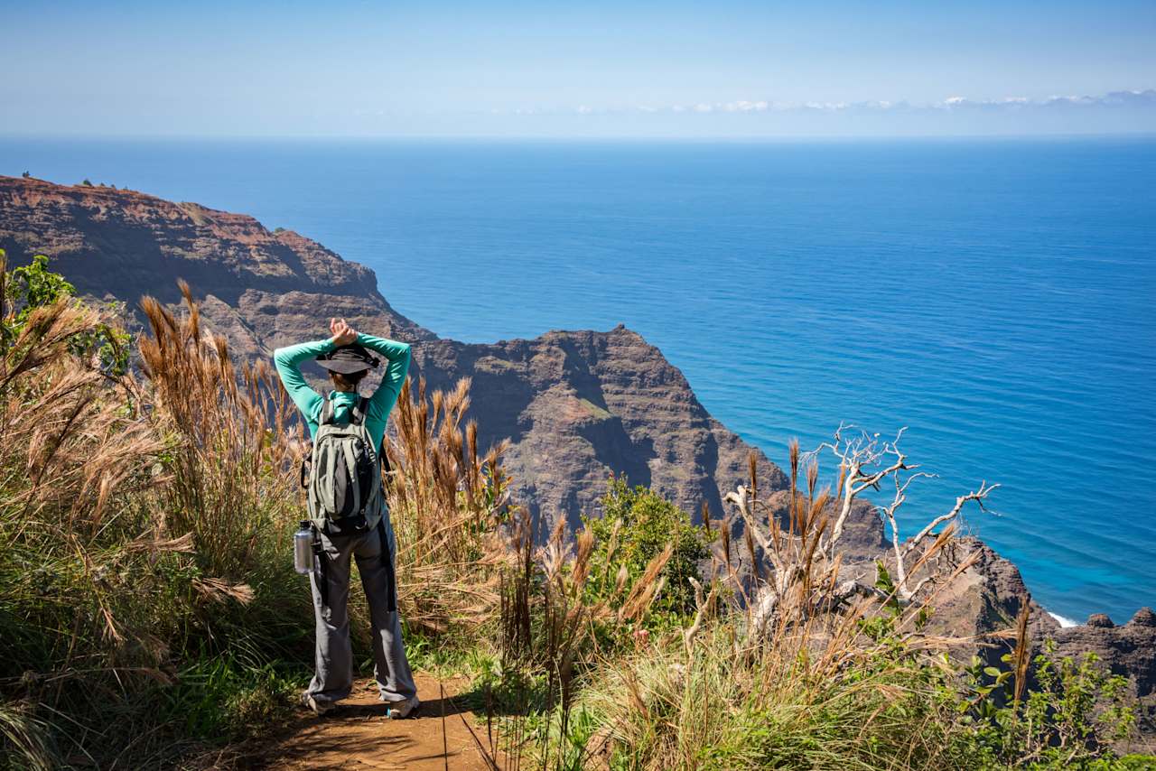 Never-ending switchbacks with a bit of rock climbing. Use the entrance facing the ocean vs. on the other side facing inland-Kaua’i.